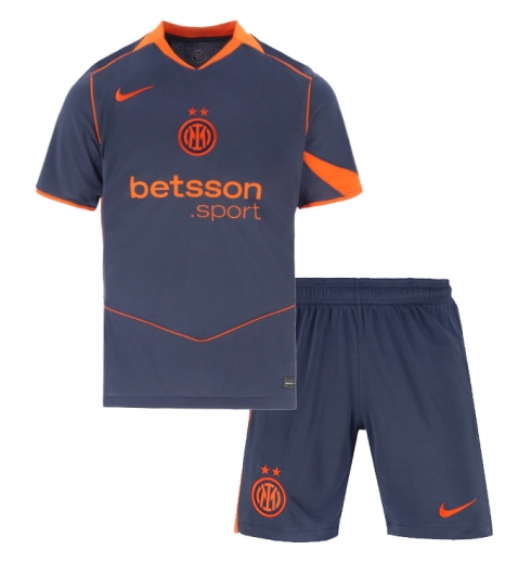 Inter Milan Alessandro Bastoni #95 Tredje trøje Børn 2025-26 Kort ærmer (+ bukser)
