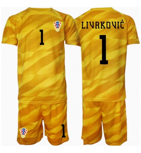 Kroatien Dominik Livakovic #1 Målmand Udebanetrøje Børn EM 2024 Kort ærmer (+ bukser)