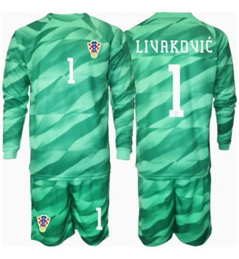 Kroatien Dominik Livakovic #1 Målmand Hjemmebanetrøje Børn EM 2024 Lange ærmer (+ bukser)